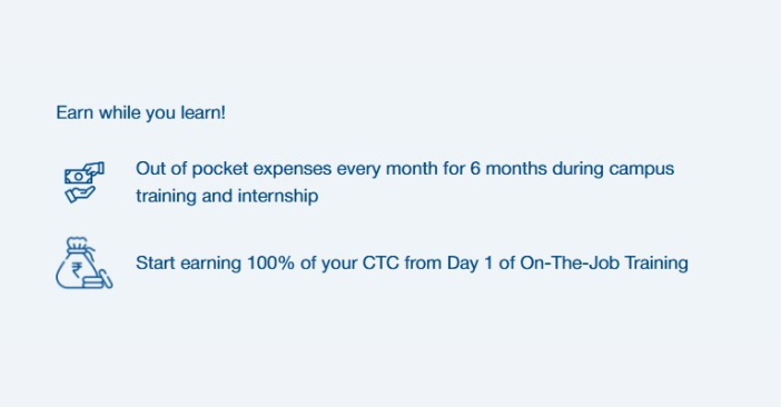 At ₹2,37,288 + GST which includes boarding charges for the first 4 months of on-campus training, the programme is immense value for money as compared to other professional courses in the same category.